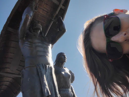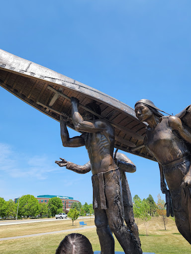 An absolutely stunning bronze statue of three Ojibwa Indians caught in time during a portage out of Lake Michigan. The 10 foot tall subjects include a young woman, an elder guide, and a young brave carrying a birch bark canoe. The canoe is 18 feet long; and the statue weighs 3 and a half tons. This project was supposed to be completed in 2014; but it took a while longer. The design and casting of this impressive work was done by the well known sculptor R. T. "Skip" Wallen. When you visit this place, you will notice the incredible detail in the the statue. The artist went all out to make this monument appear to be a snapshot from time. With Lake Michigan as the backdrop this spot between Manitowoc and Two Rivers is gorgeous! If you are driving between Trivers and Manty it would greatly behoove you to stop and take in this marvel on the lake shore. It's right across from the...