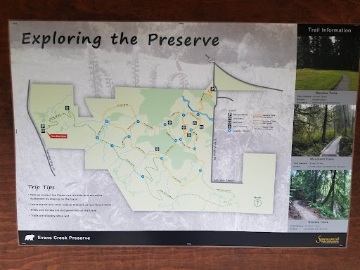 Read moreThis is an excellent tralhead to enter Evans Creek Preserve from. There is parking for about 12 vehicles and a restroom. The trail is a beautiful switch backing dirt trail that loses several hundred feet of elevation down to the meadow. There a several wooden bridges and signs with maps. Overall my favorite entry point to...