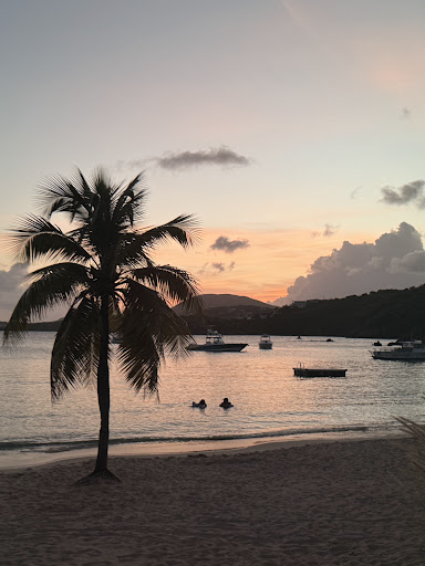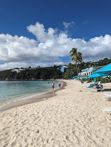 One of the most beautiful beaches I've ever seen. Under the water, on the left and right side, you have crystal clear water, corals, tons of fish, and even the occasional lobster or octopus. Down the middle, sea turtles and rays can be spotted. Above the water, the most gentle lapping wavelets give the soft, soothing sound that white noise machines have tried to duplicate for decades, and the soft white sands are framed by the forested hills that shelter the bay. Then, the restaurant is simply amazing. Some of best seafood we had on St. Thomas was at this tiny, unassuming bar and grill. The fish tacos were perfect, the fresh catch was perfectly cooked and exquisitely flavored. Finally, the dive shop was friendly, helpful, and reasonably priced for the area. They let us keep our rental gear past their closure, then place it in the rental return area.