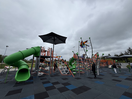 Ā Ā Ā Read moreMassive playground with really fun equipment for toddlers through about 12 years old. Zipline, merry go round, lots of slides, nets to climb, and several xylophones. Tons of benches for parents to watch from. Thereās even a kid-sized picnic table hidden among the equipment. The slides are faster than the kids expect.