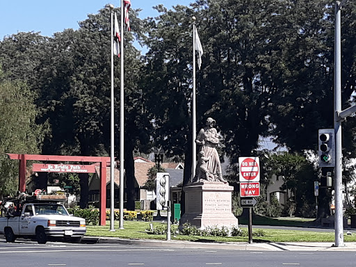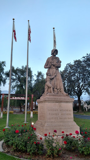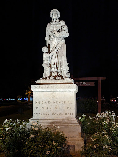 National DAR Commission chairperson Arlene B. Nichols Moss was inspired by Portland, Oregon’s 1905 Sacajawea monument to commission twelve identical Madonna of the Trail statues to be placed in the 12 states through which the “Old Trails Road” passed. The exclusively white DAR, operating amid increased xenophobia and anxiety over new public roles for women in the 1920s, embraced an explicitly white pioneer mother. Like other statues erected during the “Pioneer Mother Movement” of late 1920s and 1930s, the DAR statues balanced women’s strength with softer maternal symbolism.