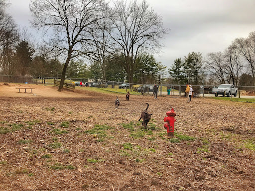 An excellent dog park, lacking only fresh water nearby. (There is a stream a short walk away which may serve the purpose, perhaps, and apparently provides swimming for dogs on hot days.) The large-dog park is built on a hill, with a fenced stand of trees in the middle of the slope. This provides shade for ownersāthere are benches near the fenceāand "something to run around" for the occasional group chase or individual frenzied run. The small-dog area is above the large-dog run: I haven't looked closely at its features. All the facilities are surrounded by a substantial and well-maintained chain-link fence. There are two entrances to the large-dog area, each having an entry area between two heavy gates. The small-dog area has the same arrangement, but may only have one entrance. There is plenty of parking, and the main entrance for each area is just off the parking lot. The far side of the lot touches the township's trail system, providing interesting cool-down walks, and another trail runs just across the street from the park entrance, should the nearer ones become...