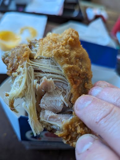 Read moreGot a 2 piece white meat meal with wedges. I'm my quest to find a royal farms with decent food in my area since I recently moved from Maryland. I drove a little further to this place and not was I disappointed. Had to spit the wing out my mouth and into my hand it was just foul. The wedges were very dark and you could tell someone is not keeping up with the oil cleanliness which is made super easy with those expensive pressure fryers Royal Farms has. It's really a shame cause if the attention to these details is kept the product is almost always delicious but it requires someone who cares and you don't see that often out here...