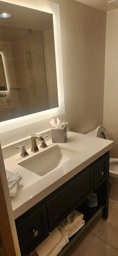 Read moreThis hotel is not only conveniently located but it has great service as well as well-appointed rooms. The room I stayed in was a King, non-accessible (no special features for anyone who is physically challenged). There was a nice sized couch and table for eating. The AC unit did a great job cooling the room (the thermostat showed a temperature that was 2 degrees higher than the actual air temperature). There was a clock with a blue read-out which was set to the exact time (thank you hotel staff) and it even displayed the temperature as well (that too was off a little but hey, pretty cool it even has that feature!!). It was not disturbing with the lights out but was very hard to see (I have horrible vision without my contact lenses so that is probably the reason)There were (12) outlets and (6) USB plugs and they were all easily accessible and thoughtfully placed. The room had a mini fridge (no freezer compartment) and a unique "2 Hour Quick Chill" setting which I tried and it worked perfectly. There was no microwave but I didn't need one so no worries. The bed/bedding was quite comfortable. There were more than enough pillows. There were several lights (including two reading lights above the bed) so even with the drapes drawn, it did not feel dark at all. The bathroom featured a pocket door. The shower 🚿 was large and open (meaning there is no door). The shower head is close to the wall so when you walk in and bathe, very little water, if any, gets on the floor (unlike my many stays at Springhill Suites where the mat is soaked when you exit the shower). There is a hair dryer tucked away in one of the drawers under the sink but I had no need for that. The elevators are placed in such a way that even if you have the closest room to them, you will not hear them because there are a few turns from the elevator to the first room (kudos to the sound engineer). The walls are a little thin and you can hear water running next door. I also heard someone's Apple Phone alarm going off at 6AM but since I was already awake and they shut it off quickly, it wasn't an issue. There is a nice looking dining/bar area but since I did not visit that amenity, I can't comment on it. The parking is more than ample and secure. I was not worried about my car for one moment.