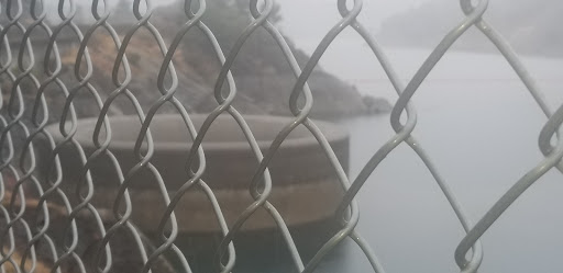 The dam overlook is right on Route 128. The dam is 26 miles long and 304 feet tall. The spillway hole is 246 feet deep and 72 feet in diameter. There is an information board providing the history of the dam. There is a concrete sidewalk that stretches a bit westward from the dam. If you follow that walkway, you can view the lake spillway hole. The hole is a constructed overflow outlet that looks like a big hole emerging from the lake. When the water level is higher than the height of the hole, the lake water drains into the hole. When I visited a few days ago, the lake level was low. So no draining water vortex effect.