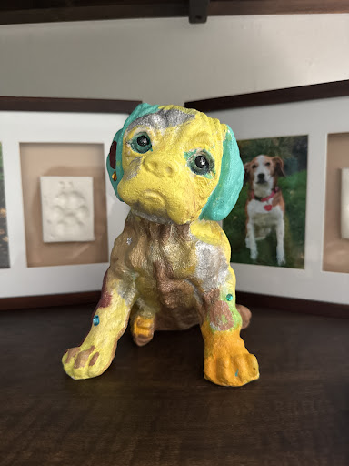 Robin was so encouraging and made my daughter feel like a true artist. My daughter had an absolute blast using a multitude of vibrant colors, and the final piece turned out amazing! The dog statue now proudly sits in our living room, and it’s such a special keepsake.