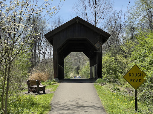 It does cross a couple streets where you need to be careful but otherwise it's a lovely stretch of mostly tree-covered trail. It's great for a stroll or exercise for any season but not in winter if the trail is covered in ice or snow. If it's deep snow, I've seen cross country skiers.