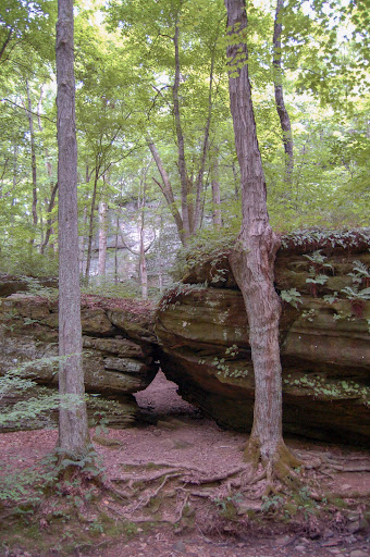 Ferne Clyffe state park campground has two camper loops and the sites are electric only. There are primitive sites as well. The camper loops have lots of trees and are level gravel (handicap spots are concrete). The sites are a bit on the smallish side and almost all are directly adjacent to other sites. Water faucets are located at a few places around the campground but there isn't a place to park around them when filling tanks. There is a shower house and a few vault toilets sprinkled around. In general the campground is quiet and turns in early around 8pm. Access to shopping is just a few miles away and includes some fast food places. The campground has access to the trail system which has 18 awesome trails which include magnificent bluff views (both on top and from below), a part time waterfall, a lake trail and trails through wildlife refuges. The last 7 trails are in an adjacent area so you'll need to drive over to those. The trails are very well marked and signage is the best I've seen. Some of the trails are on steep hills or are over roots and rocks so pay attention to the trail signs at the beginning of each trail. Alas there is no interpretive center nor an open park office to talk to a ranger. A host is here but proved hard to find. There are no printed park maps and it was hard to find information on the location of camping spots. They do not offer firewood so bring your own as the locals around the park charge 2 arms and 3 legs per bundle. The park allows a tent and a...