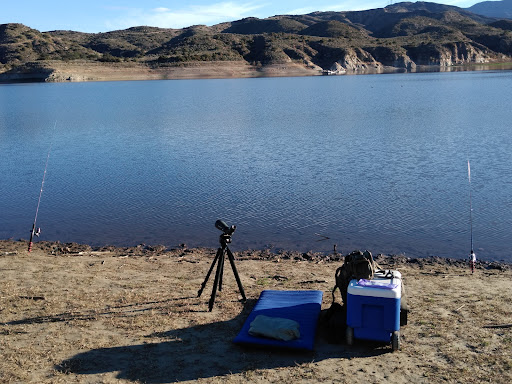 Lake level is extremely low, partially due to the ongoing drought and because they purposely keep it that way on purpose. But still, I've had quite a few 10 and 15 bass days during March and April. No fishing license required, and parking is $5. where you pay at the kiosk. You then have a mile to mile and a half hike to the lake depending on what shore you want to get to. So it's best to bring one of those "garden type" wagons if you plan to bring and ice chest, lots of gear, or little ones with you. Lake is open Friday, Saturday and Sundays only, from 7 to 4, and is strictly shore fishing only. Make sure to read the lake rules because some fish are catch and release only, and some fish are catch and release beyond a certain size. But for $5. in Orange County you can have a great day fishing whether you...
