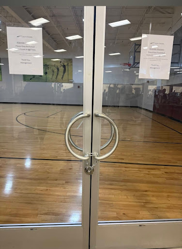 Then super impersonal maintenance guy who somehow never is dressed like a maintenance guy, wonāt give us his name puts a chain and pad lock on the door. (Thatās gotta be fire hazard since the court has an emergency exit.) He then proceeds to tell a member that weāre being punished.