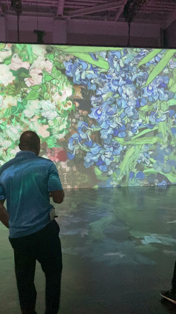 Wow! This exhibit is really phenomenal! As we entered, we were serenaded by the song “Vincent,” which is part of the soundtrack that continues to play as you weave your way through lighted screens featuring artwork and Van Gogh’s bio. They even include snippets of the letters Van Gogh wrote to his brother, Theo. At the end of this portion of the exhibit, you enter the immersive experience, and oh, what an experience! All the walls (and sometimes the floor) in the exhibit hall come alive with Van Gogh’s art. There are portraits, flowers, village landscapes and of course, stars! There are a few benches where guests can sit and watch the scenes change, as some artwork fades and new pictures take their place. Because seating is limited, some people choose to find a comfortable place on the floor while they take in the masterpieces. This really was a uniques experience, and I left with a greater appreciation for Van Gogh as an artist and a man. Please note, this is a limited engagement. Get your tickets while you can!