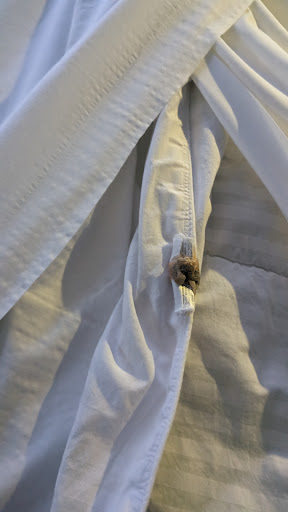 There was what appears to be black mold on the curtains in our room. Photos are attached.