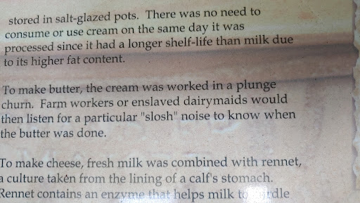 I include a picture of a chair to show how small the seat of it was. Pictures of linimint bottles, and a photo of the- to me-simply stupid way to say slaves. They were not farm workers or dairymaids. (As an aside, Lance answered my question about the word 'enslaved '. I am now educated and will say that in the future when it is appropriate.)