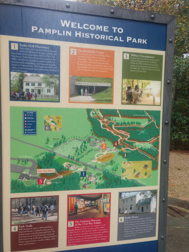 This place is great! Very well put together historical grounds and information centers. We came on a weekday in the afternoon and it wasn't busy at all. There are guided portions of the entire facility, or you can get an audio guide from the main building at the entrance. We elected to use the audio tour guide device and went throughout the grounds leaning as we went. The Tudor plantation was so neat, live animals and walk through out buildings immersed us in the time period. The house was set up as the troops would have had it when it was used as a headquarters. The slave houses on the grounds were very eye opening to the living quarters for a slave at a plantation. The battlefield area was set up as a replica of how battle positions and fields of fire would have been established. At the field camp, we were given a demonstration and and information on daily life for a soldier living in the field by two reenactors. Both did an excellent job answering questions and gave a demonstration of the rifles that would have been carried in battle. Beyond the recreated encampment, actual Confederate earthworks can be seen still intact. We spent several hours here and didn't even see everything. If someone wanted to take in all the available information at the Pamplin Historical Park, I would at least allow for 4-5 hours, but you could easily spend more time than that. 5...