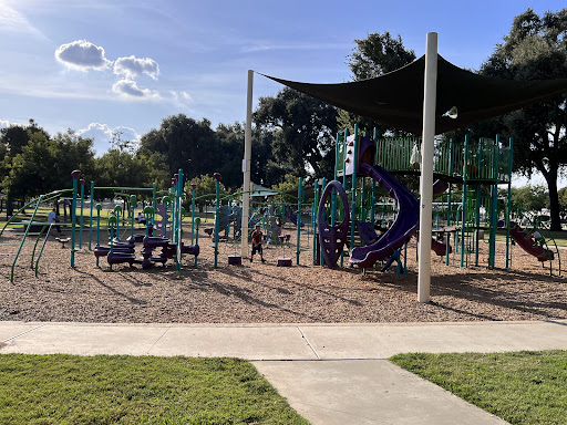 There's one play area (the bigger one) that has a good variety of play sets for different age groups. They range from little toddlers up to older kids capable of more advanced climbing and swinging. The smaller playground is great for kids 2 and up (there's a sign posted that says so) and has a fun scavenger hunt that's actually a little challenging. My boys had a blast trying to find all the items throughout the jungle gym.