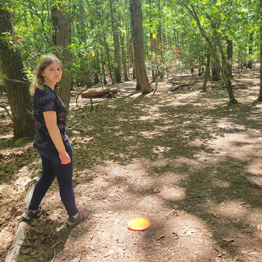 Stafford woods disc golf course is a really nice course mainly in the woods with a little elevation changes on a few holes. We had just a little trouble finding parking since we were there on a really nice Sunday afternoon and the dirt parking lot was mainly full. Also since I was pulling a small trailer that made it even more interesting. Once we got parked the rest of the course was well worth the effort...
