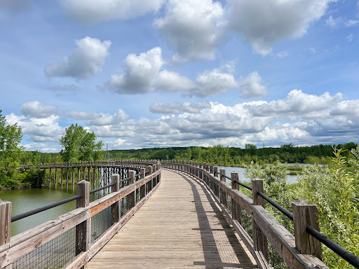 Read moreFairly new so the trees are still young and need time to mature. Easy parking, a beautiful trestle bridge overlooking the wetlands, lots of open fields for flying kites, and numerous paths for walking, biking, or rollerblading. The pavilion is for rent which can be annoying but it is far enough away to not interfere with any outdoor activities on the trails.