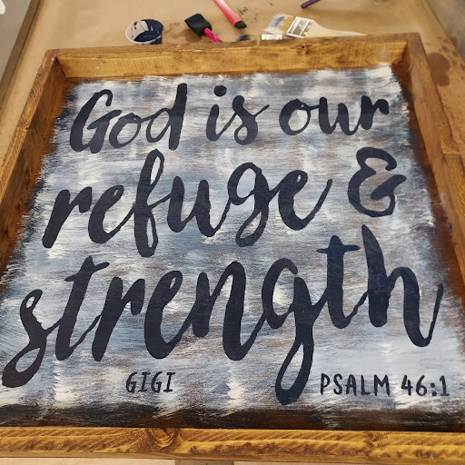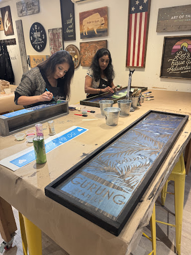 Read moreI AM NOT artistic and have a long history of feeling overwhelmed and shedding tears of fear when I have joined ladies at my church for annual Christmas projects. I admit my daughter owns this Board and Brush. She assured me this is not difficult. Oh my goodness! What a fun, amazing experience! Tears? Only tears of happiness that I could choose my own stain colors, my own design, my own paint colors, and have it turn out beautiful and unique. Everyone was having so much fun and encouraging each other. Carrie was excellent with instructions and made sure any questions were answered. She kept track of all 11 of us .. how each project was going. Every project was amazing. Everyone creating their own unique design. I have seen the work that Carrie and the other employees put in before the class ever starts. It is a lot. But their pre-class work and careful attention to each person's request is vitally important to the success of the event. It is not cheap. But you will not go home with a cheap piece of artwork. You will go home with a creation of your own design that you can proudly display. And you will have a blast doing it! Come! Bring your family. Bring your friends. Guys .... bring your wife here for a date night! You will...