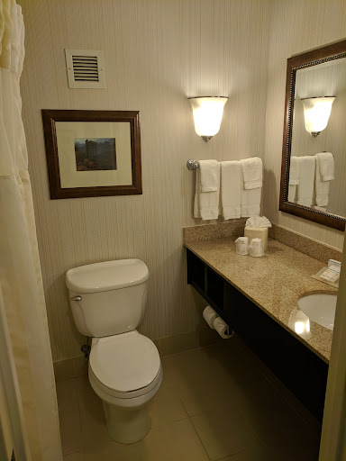I am currently staying at the Hilton Garden Inn, and the service has been impeccable. From the friendly customer service to staff being very accommodating. Especially Michael, the gentleman working at night. Who helped me with my hotel reservation issues and the hotel chef who was able to accommodate my gluten allergy. 10 out of 10 would stay here again. The only feedback I would like to provide is the location and lighting. Which is more a corporate issue. The room lighting makes it hard to see per my attached photo. You will see that there is no ceiling lighting. Also, the hotel has only one entry/exit point and in order to get on the hwy. You have to turn left on to a busy road crossing. But on a more positive note, the parking was conveniently located with plenty of handicap parking spots at the front entrance. The environment was very clean and quiet as well.