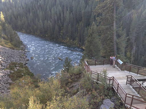 Read moreBeautiful quick stop along the Mesa scenic Byway. There is a fee but with an America the Beautiful park pass that fee is waived. Nice small historic lodge turned visitors center with interpretive hands-on displays and helpful literature. Gorgeous Falls. Lots of mosquitoes. Believe what others tell you about them. It's true but well worth it. When we were there during the morning hours there was a gorgeous rainbow kissing the falls. Also a pair of nesting Osprey across the river and a marmot sharing the overlook with us. There is a 2.5 mi round trip (total distance out and back) nature trail that leads to the lower falls that looks like it would be worth the additional time assuming you have a decent amount of bug spray. Enjoy! It was a great spot for us to stretch our legs on the journey between Bozeman...