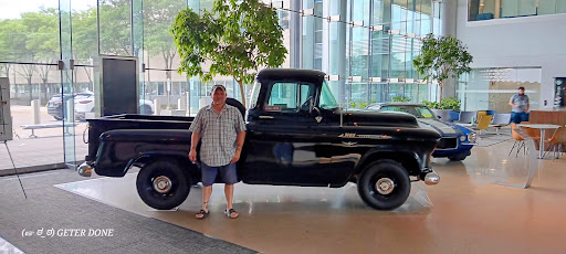 Big main office where I picked up a box delivery out of state. So the old Chevy trk. Inside the bldg. Has never touched asphalt. Awesome to see and get my pic. Standing beside it. Nice people and great to do business with.