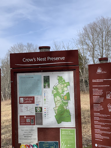 I was a first time visitor to Natural Land’s Crow’s Nest Preserve on Sunday June 9, 2019. The visitor center was closed which was no surprise but the uni-sex restroom was open. I grabbed a trail map from the display and decided to hike the yellow-marked Creek & Chief's Grove Trail which is listed at 2.5 miles. The low areas were quite muddy. The higher parts of the trail go around corn fields. I didn’t see any wildlife other than a few butterflies and dragonflies. I saw a farmer spraying the cornfield which was the only wildlife I was able to observe. The hike took about two hours in the intense sun. I found that the trail was quite boring. I ended up only took a few pictures. The high feathery cirrus clouds in the crisp blue sky were the highlight of the trip. On some trails horses are allowed. No bikes are allowed. There is a small but ample parking lot. The hours are dusk to dawn. Be aware of the constent gunfire from the nearby gun club. Desturbs the...