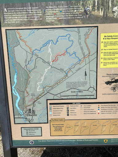 I came to Batsto to ride the 18-mile long Penn Branch trail loop. There was plenty of parking, even on a beautiful Sunday, and plenty of people around. The public bathrooms were out of order but there were porta-potties available as an alternative. There’s also a nice picnic area with tables, and an open grass field.
