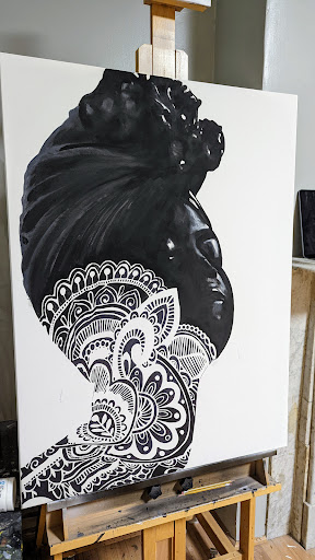 Read moreBlack-owned commercial galleries remain rarities in America. However, there was an alternative art world for a brief period in the 1960s and '70s. This small, unassuming building houses some of the most incredible collections of art I've seen in the DC area. These great mixed-media canvases, in which textile and paint meld to create stunning portraits, look to provide viewers with a portal to another world, an alternative history of sorts populated by Black people who exude an air of regality, beauty, and joy.