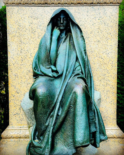 Commissioned as a monument for the grave of Clover Adams, wife of Henry Adams who was later also buried there, this has been called the greatest example of American sculpture ever made, and deservedly so. The sculptor, Augustus St. Gaudens, did not name it; it has been called, variously, "Grief" (from a comment that "All human grief shows in this sad figure," attributed to Mark Twain), "Peace", "Nirvana" or simply the Adams monument. St. Gaudens once said that had he been pressed to name it, the only name he would have given it was "The Peace That Passeth...