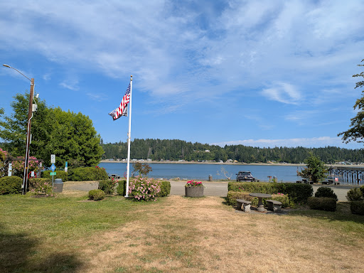 Its kind 0f tucked away. And usually pretty quiet. The parking lot is not even a blocks distance from the main road. There's a small section of public beach to the right of the dock. Then signs posted private beach. To the left is a bigger section of beach then a smaller dock. Then another section of beach with an attached per area. There's basketball courts beyond that. There are concrete steps to both sections to the left and when the tide is our you can go under the big dock. There are quite a few large boulders along the beach you can sit on and take in the s9ghts around you ..fishermen on the dock. Sailboats in the water.. Cute houses across the water that seem to almost be climbing the mountain. There's usually seagulls and at least one eagle that I've witnessed steal. From the gulls. And they really get upse6 over that and chase the eagle through the sky screaming in frustration . but the seagulls here in Allyn seem to be. More "friendly" and don't mind just hanging out with people. They will catch food and bring it to you laying in front of you. Then will get in the water and just casually float around watching you and the meal as the sort of talk to you like1 you should know what it means or know what to do. the behavior seems intentional with effort to interact with you. Maybe they are trying to start up a trading of food items. But oh God. DON'T EVER EAT ANYTHING THEY BRING YO.U..YIKES THERE IS A bathroom building with 5 or 6 private bathrooms. Theyre pretty big.. There's usually at least 1 open. When there's aLot of people they open them all but as the Sun sets they close most of them. The park closes at 10 pm. There's not a gate but there is security and 9fficers that are nice to remind you of the park hours. And they are nice but need to clear the property. There's beautiful rocks and there's picnic tables along the edge of the lot .you park right up to them.. There is a burger place right across the street and a gas...
