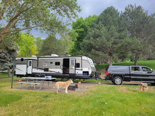 Read moreWe travel with a 42 foot 5th wheel RV. Pulling in one of the rules that is strictly enforced is, you cannot enter the campground before 2:00, no exceptions. Really hard to understand this policy but what ever, maybe they need time to trim back limbs that are over growing the entrance to the 100 foot pull through sites. I know, you may be thinking why not just back in. Great idea and whit the curve of the site it wasn't that bad. The people that I talked to were nice enough but the grounds need some serious attention. The grounds maintenance folks are on site first thing, putting out removable sprinkler heads to water the grass that are right along the edge of an extremely narrow asphalt road.
