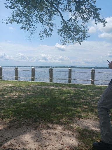A very good playground with multiple things for handicapped children and a great view of the river, including fishing pier. Just across the road is a boat slip. There are swings, slides, merry go round and climbing tower that also has ramp and steps. Swings and slides both have a big kid and little kid version, as well as baby-and-parent co-swings. Playground is fenced on only 2 sides so little children will need to be watched closely as the 4 lane road is not far away. There is also a couple shaded gazebos with tables for parties or sitting, lots of bench seating scattered throughout playground equipment for watchers, and bathrooms a short walk away..bathrooms are summer months only. Large grass areas with shade trees surround playground on 2 sides as well which make good picnic areas. Overall a...