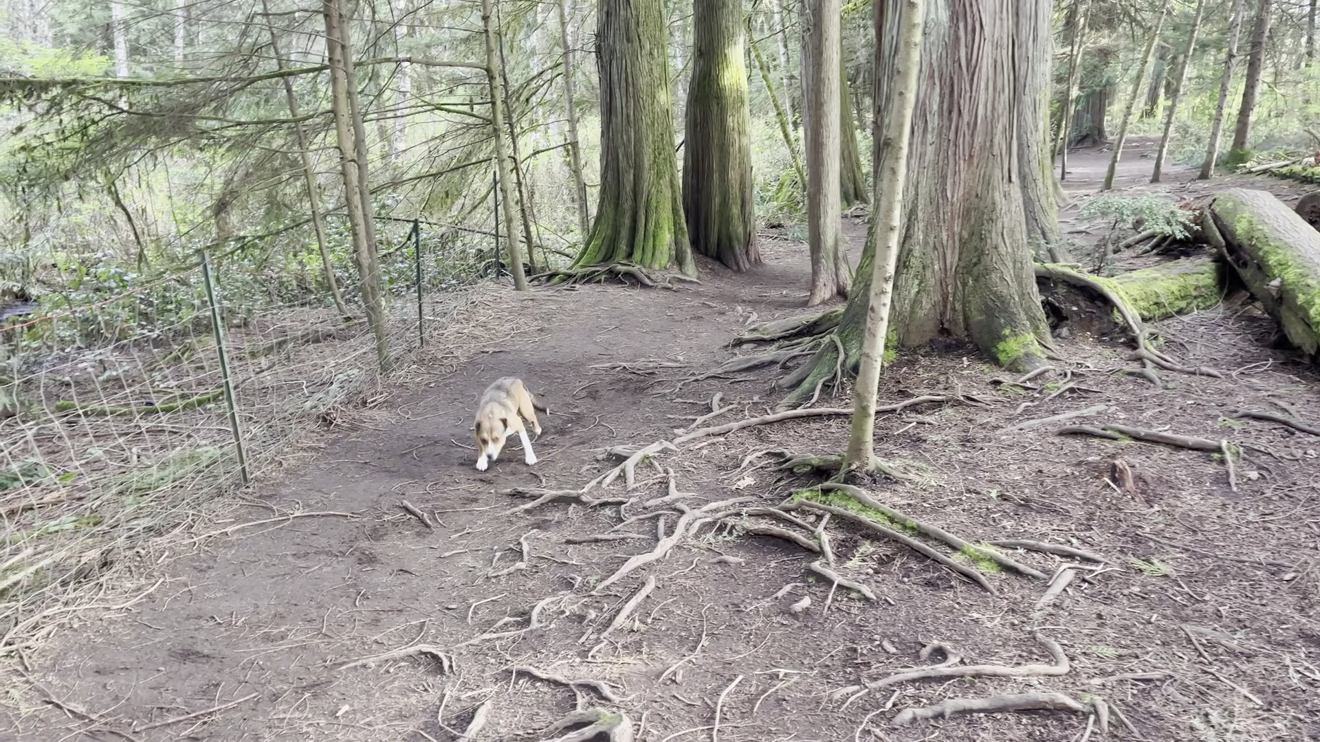 The dense forest trail provided a unique and exciting experience for both myself and my furry friend.