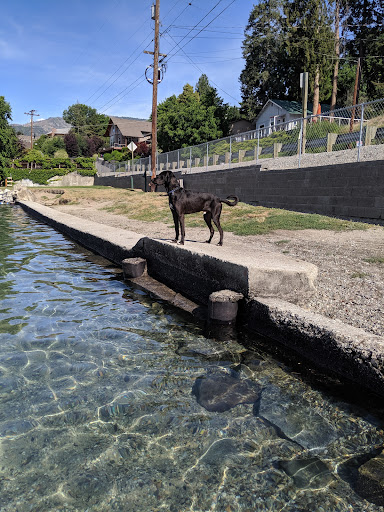 Be careful with the dog park as it's not completely fenced in. The right side is fenced in with plastic strip. So I wouldn't suggest coming if your dog runs off or doesn't listen. It is off of the main road where there is a bend so be careful getting out and in your vehicle it's a small parking area. With that being said if it is full I would come back. It's just a small off the leash strip for your pup to experience the water.