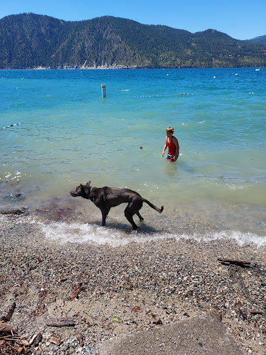 Visited the dog park off to the right of the main beach park. It's a small fenced area along the road with a little bit of grass for dogs to run and relieve themselves. Probably great for dog owners with pups that love to swim, since there's calm water access for them. My only gripe is that my wily pup explores and climbed over the rocky edge and around the fence that doesn't go all the way to the water, so he was able to get outside of the park and jetted right into the street. I about had a heart attack and fortunately it was early so no cars came by. Do not recommend if you have a runner or a dog that explores boundaries, because both ends of the dog park are not secure and the fence entrance is also opening a lot and right by the road for any...