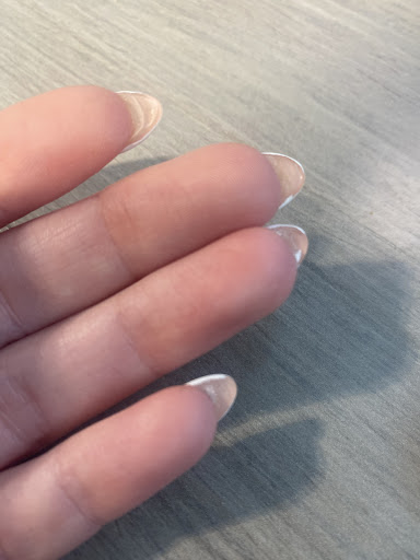 After leaving I also noticed that the bottom of the nails felt gummy. Apparently, this is because too much glue was used. When I went here before, Candy made sure to use a nail drill to file underneath the nail. Kelly skipped this step. When she realized the glue was clunky underneath she tried to use a regular file but did it unevenly and realized some of the French striping was being filed off. Lastly, Kelly did a poor job selecting the size of the nails and even realized this when I went back because the French line was on the artificial nail but there was a space underneath that was blank where you could see where my actual nail was.