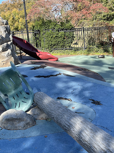 Read moreNice playground with connected splash pad. Great stuff for older kids. Lots of climbing options; big, steep slides, and a couple swings. The ground cover is nice artificial rubber turf with various mounds and hills, all in solid condition. Plenty of space for kids to run around. The park is well shaded too, which is nice in the summer heat.