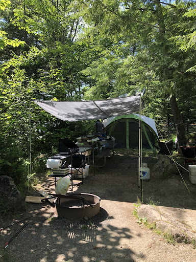 THE SPOTS: I booked two of the most isolated spots (#36 & #37) in order to have minimal disturbances over our trip. They're almost a half-mile and a mile away, respectively, from the closest spots, as well as where the parking area is, so best to pack light. We had camping wagons to carry our gear in. I would not recommend these specific spots here without something of the sort. (Many of the other spots have adjacent parking fwiw). They each have a firepit, picnic table, and a pit-toilet off a trail from the sites. They sit on the edge of North Pond (not pictured in uploaded map), but different parts. In retrospect, we could have made due with just site 36 since it was large enough, and we spent most of our time hanging out there as site 37 was 1/4-1/2 mile away. There is a launch off point for canoes/kayaks adjacent to site 36 (separated by some brush and a small stream so privacy maintained), saw 3 parties use it in 4 days. ZERO people came by site #37 - totally remote, probably could have walked around naked TBH. There was a large muddy area and puddle at the entrance to the site though (nearby the table and tent-pitching area were clear & dry) - something to keep in mind if you're considering it during a rainy season. Lastly, 36 is pretty open and gets a lot of sun. #37 has heavy tree coverage, but also a lounging rock out on the lake's edge (pictured).