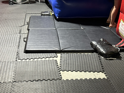 I agree with other comments, the floor mats were a tripping hazard. Would be better if there was a solid rubber flooring mat covering the space and maybe better coverage or blockage of the air pumps and electrical wires. Also, in the 2 and under zone, I don’t see a reason for a trash can. There were multiple times the kids tried picking out the discarded coffee cups🤢 Fortunately, we were able to pull them back and reroute them to the toys. But overall, it really was a...
