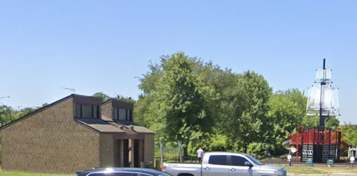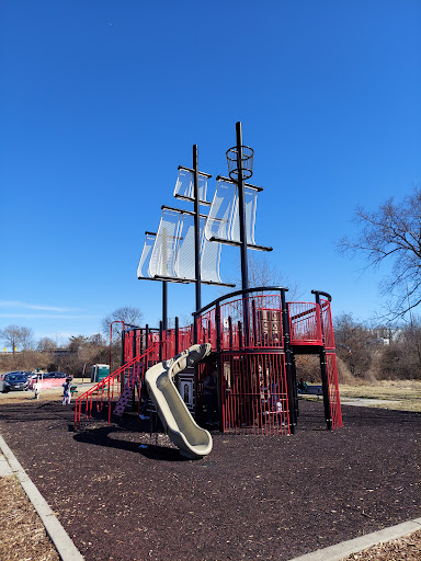 Lovely new-feeling pirate ship playground with bathrooms, shaded pavilions for picnics, and quite a bit of close, free parking. The view of the river is lovely, as is the marina across the river.