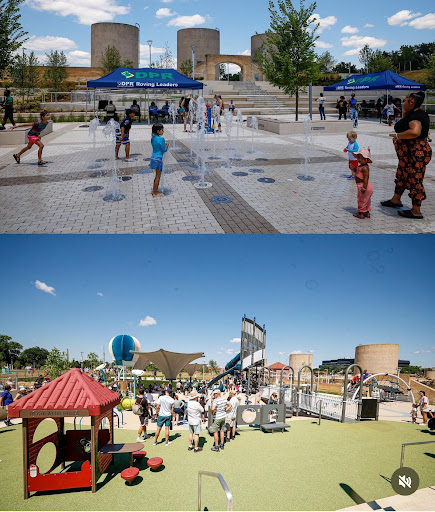 My family and I went to the opening celebration on June 15th with our toddler. We still call it McMillan Park and everyone else we talk to about it does as well! We are so happy to have a new pool and playground in our neighborhood. The playground is on the upper part of the park, accessible from stairs on 1st St NW, or for strollers and disabled access, from Lower Service Court (the road bisecting the park along the concrete silos). I hope DCPR urgently plants trees or installs something type of shade ASAP. The playground has almost no shade and it’s baking in the sun. The rubber surface on the ground was burning all the children’s feet.