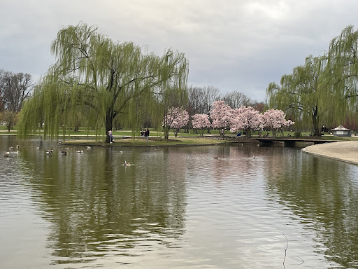 This is an interesting monument dedicated to the original signers of the Declaration of Independence. It is a simple design and construct, consisting of 56 separate stone blocks, each with a gilded copy of the signer's signature as well as their home town and occupation engraved into the stone. The blocks are arranged in two rows forming a split half circle and is the south side of the pond.