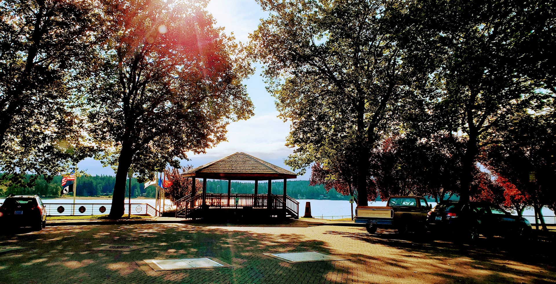 I can't even begin to say when the last time I was at this pretty little park in Silverdale, I would have to say years probably. It has been so long that I can't say I remember what it looked like, at least not in detail. I know stuff has changed, there has been so much construction work going on, and for a while, no one could even get to the park. For that said, on a whim, I decided to drive to it today, and low and behold, I was able to get there. I saw no shortage of parking; this park also offers parking spaces for boat trailers; yes, you can launch your boat from here; also, no regular cars are allowed in this area. Have I mentioned the picnic shelter, a great place to have a family gathering, birthday parties, etc.! It looked like a playground and a restroom area close at hand near the shelter! The large picnic shelter has lighting, electrical outlets, sinks, countertops, and running water; I think it may also offer a bbq. I believe they also offer a gazebo, smaller for a more private party. And scattered about are picnic tables, great for a little outing, but no significant commitments of having to drive very far to be outdoors! If memory serves me correctly, you can see Mt. Rainier from this park on clear days! Aside from what I've stated, the fun thing is that old town Silverdale is right across the street, and you're less than ten minutes by car to Kitsap Mall, Safeway, or Silverdale in general. It's a great little place to check out if you have never seen it before! The park is at 3337 NW Byron St, Silverdale, Washington. NW Byron street is off Silverdale Way NW, located in Old Town Silverdale!