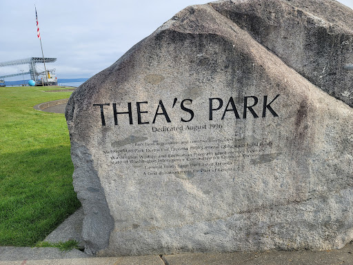 Read moreThea’s Park is a hidden gem! Hidden because I almost missed the turn off Dock St into the drive that leads to several parking spots on either side of the drive. Also a couple more spots to park all the way at the end of the drive by the small rock beach. Waterfront park area has a good green space with the large rock at the east end next to The Dock, which adds another place to walk around with a boardwalk on the backside. At the west end of Thea’s is the rock beach, a huge globe surrounded by stones and bricks with names as well as messages, and a tall sign post with “welcome” in many...