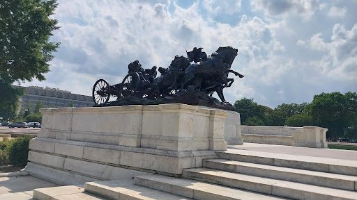 Read moreIntense statue - unlike so many in DC where we see an individual in thoughtful repose, this statue features a General Grant, flanked by lions and sitting on top of infantry images, looking toward Lincoln and seemingly guarding the Capitol building. Grant does seem calm, but apparently this was his thing during a fight and was well known for it. The intense part are the flanking battle scenes. On the South side, the artillery seeks to turn but one of the horses is reacting to a broken rein while a pennant bearer seeks to control the horse. The soldiers on the carriage are cold and you can see the stress on their faces. The cannon is mired in mud and the ground is broken and strewn with obstacles like a discarded rifle. On the North side, the cavalry is charging and they are under fire. One of the horses has been hit and has dumped his rider, who is about to get trampled. An interesting side note is that the face of the dumped rider is that of the artist who died just two weeks before the grand unveiling of this work. Don’t...