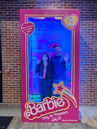After soaking up the history of 'Oppenheimer,' my wife and I couldn't resist the opportunity to 'decontaminate from three hours of radiation' by posing in the giant Barbie box nearby. It was the perfect whimsical end to a memorable evening.