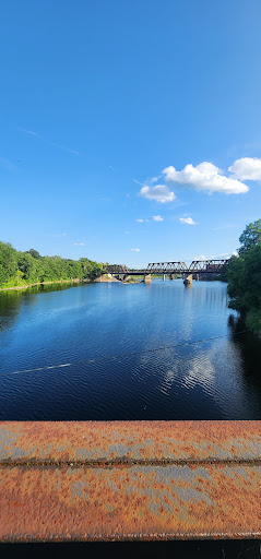 You can access the Two Cent Bridge from this park! Ample parking. Benches and picnic tables. Also an interesting monument and beautiful birch tree commemorating Waterville's friendship with its "sister city" Kotlas, Russia! This wonderful tree and the stone, with details about sister city Kotlas in Russia, is right where you access the Two Cent Bridge with all the " love locks" which seems kind of fitting! Bridges that join sides of the river, people, and cities in seperate countries!