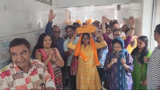 People from various states gathered for the Dhaja Vandan Pothi ceremony, creating an unforgettable experience. After darshan, the prasad (lunch) area and canteen were overflowing with devotees, and the adjacent auditorium added to the grandeur. The outdoor area, featuring a lake and open land, was a major attraction for pilgrims. Many also performed the GiriRaj Pradakshina, circumambulating the mountain, and had a blissful GiriRaj Darshan experience.