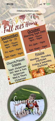 Read moreFalsely advertized church/youth group rates, not impressed. We came opening day with our activity days group in September of this year. It was advertized on website September rates would be $4/person. They charged the leaders $12 when it states on their website $4/person. We tried to tell the lady in the booth but she told me we still had to pay $12 for the leaders. Had we known, we would not have chosen to come here. Will not be back! Also not impressed with the corn maze pathways. There were still corn stocks sticking up and the pathways were really uneven. Very hard to walk on and felt like I could roll my foot at any moment. It was so bad we didn't even finish the maze.