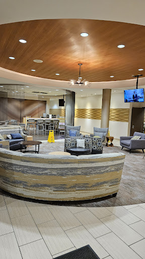 The lobby was clean and nicely laid out. The staff were friendly and accommodating. When we got to the room we originally felt it was very clean but when we looked a little deeper, we noticed barbecue sauce splattered on the curtains and bathroom door. The couch and ottoman looked dingy and needed to be shampooed. The hide a bed in the couch was absolutely horrible. I wouldn't force anyone to sleep on that thing. Completely flat and painful. The bathrooms and bedding were clean and the bathroom layout is great; a shower/sink room and a toilet/sink room. We were able to hook up to our Netflix account on the TV which was great. The pool was a little cold at first and when in the Jacuzzi, the chlorine was burning our eyes. We enjoyed having a warm cookie during social hour. The beds were not comfortable but again were clean. Our room was above the outdoor fire pit area and people were being very loud for hours. So much so, that they kept us up and after falling asleep woke us up. I finally had to call the front desk around midnight and after then, I didn't hear them. The free breakfast was great. Waffles, oatmeal, eggs, sausage, toast and assorted bagels and muffins. There was coffee, tea, juice and milk as well. All in all, we were happy(ish) with our stay but feel the beds could have been better and the room could have been a bit more clean; especially because of the high price we paid. The rooms definitely don't match the price. We wish the outdoor fire pit area would have been closed at 10:00 p.m. instead of having to call the front desk. And, the people above us were very loud walkers which was a...
